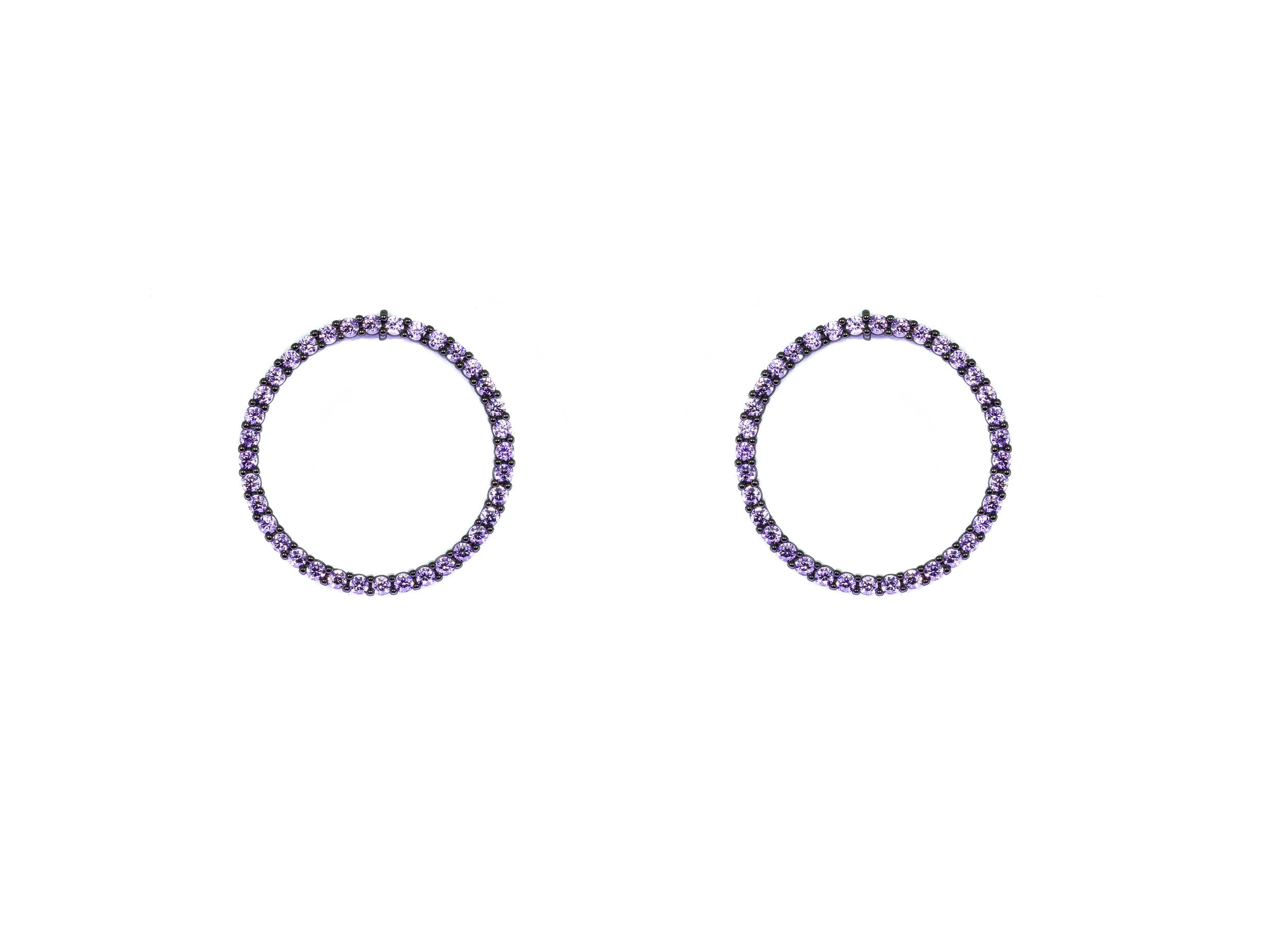 Componenti per orecchini componibili con pietre tonde in zirconia cubica ametista, realizzati in Argento 925 con galvanica rodio nero.