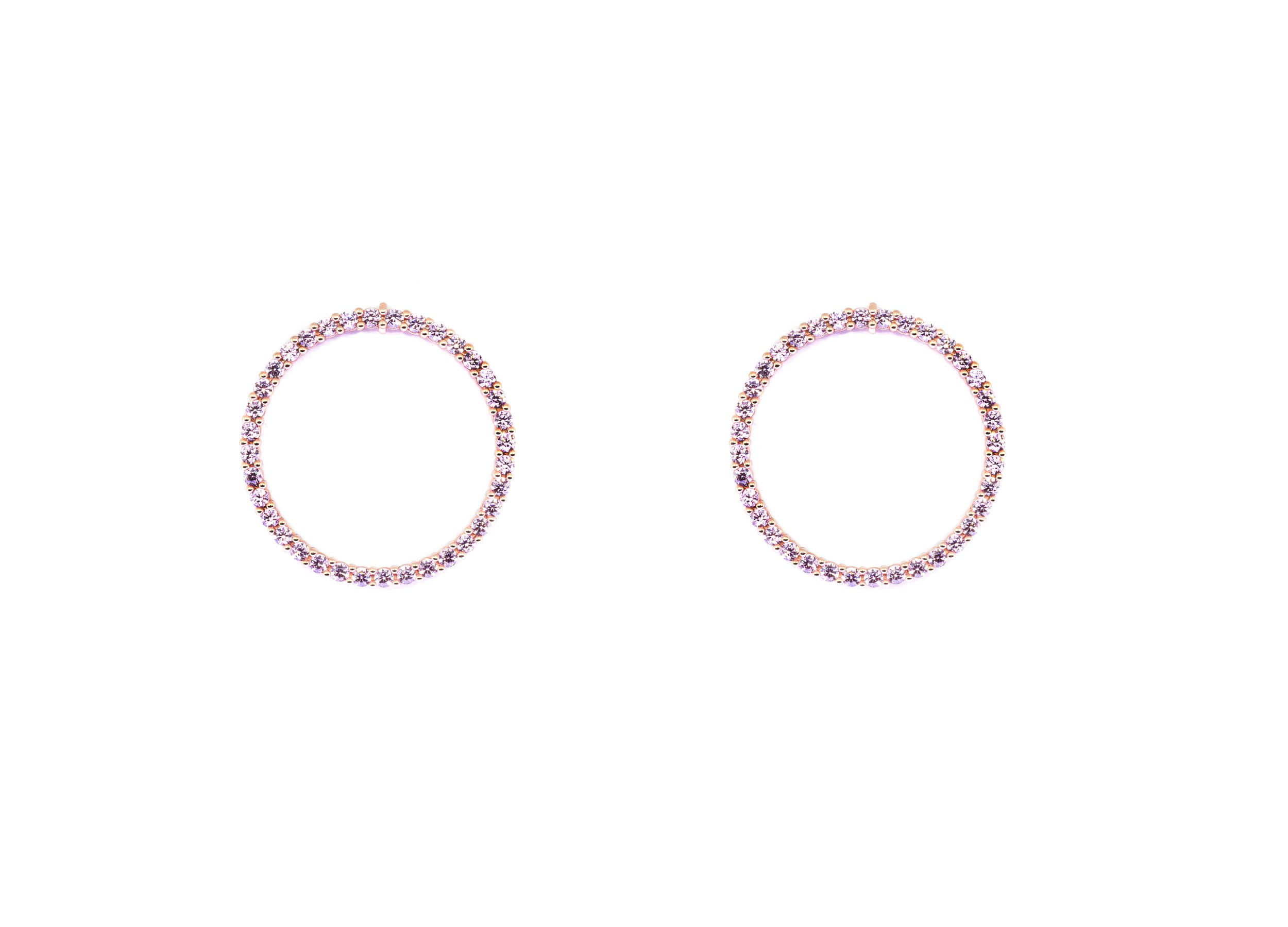 Componenti per orecchini componibili con pietre tonde in zirconia cubica rosa, realizzati in Argento 925 con galvanica rodio rosa.