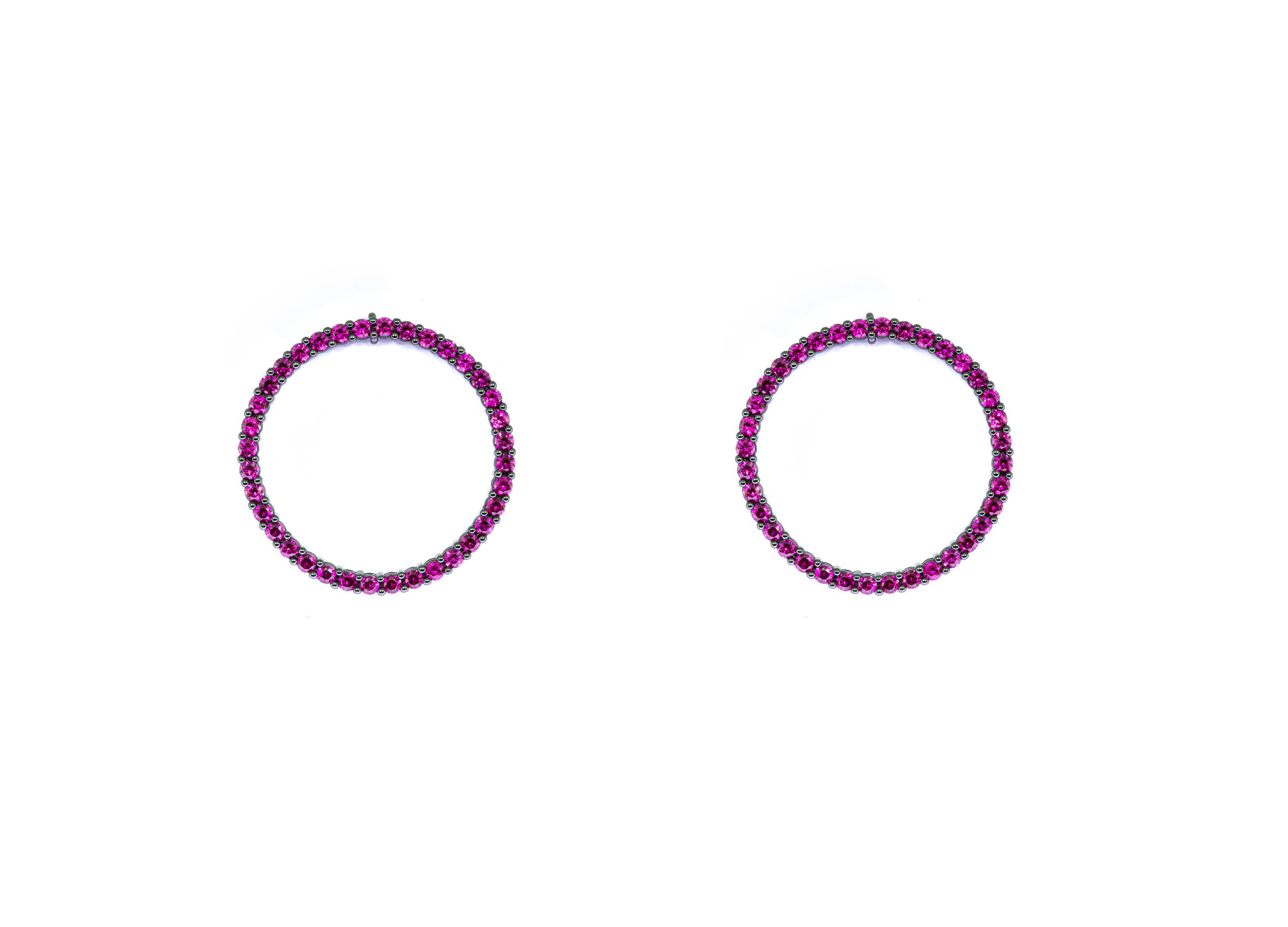 Componenti per orecchini componibili con pietre tonde in rubino sintetico, realizzati in Argento 925 con galvanica rodio nero.