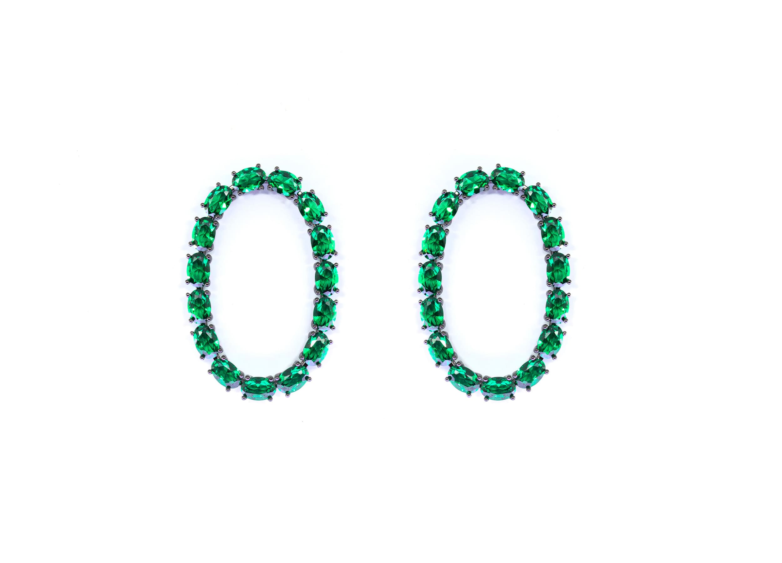 Componenti per orecchini componibili con pietre dal taglio ovale in nano crystal verde, realizzati in Argento 925 con galvanica rodio nero.