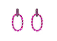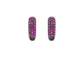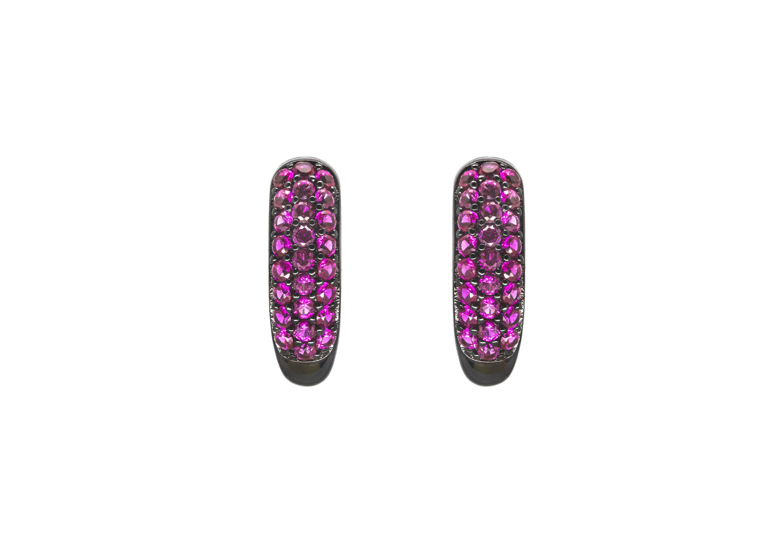Orecchini componibili realizzati in Argento 925 con galvanica rodio nero ad alta resistenza e rubino sintetico.