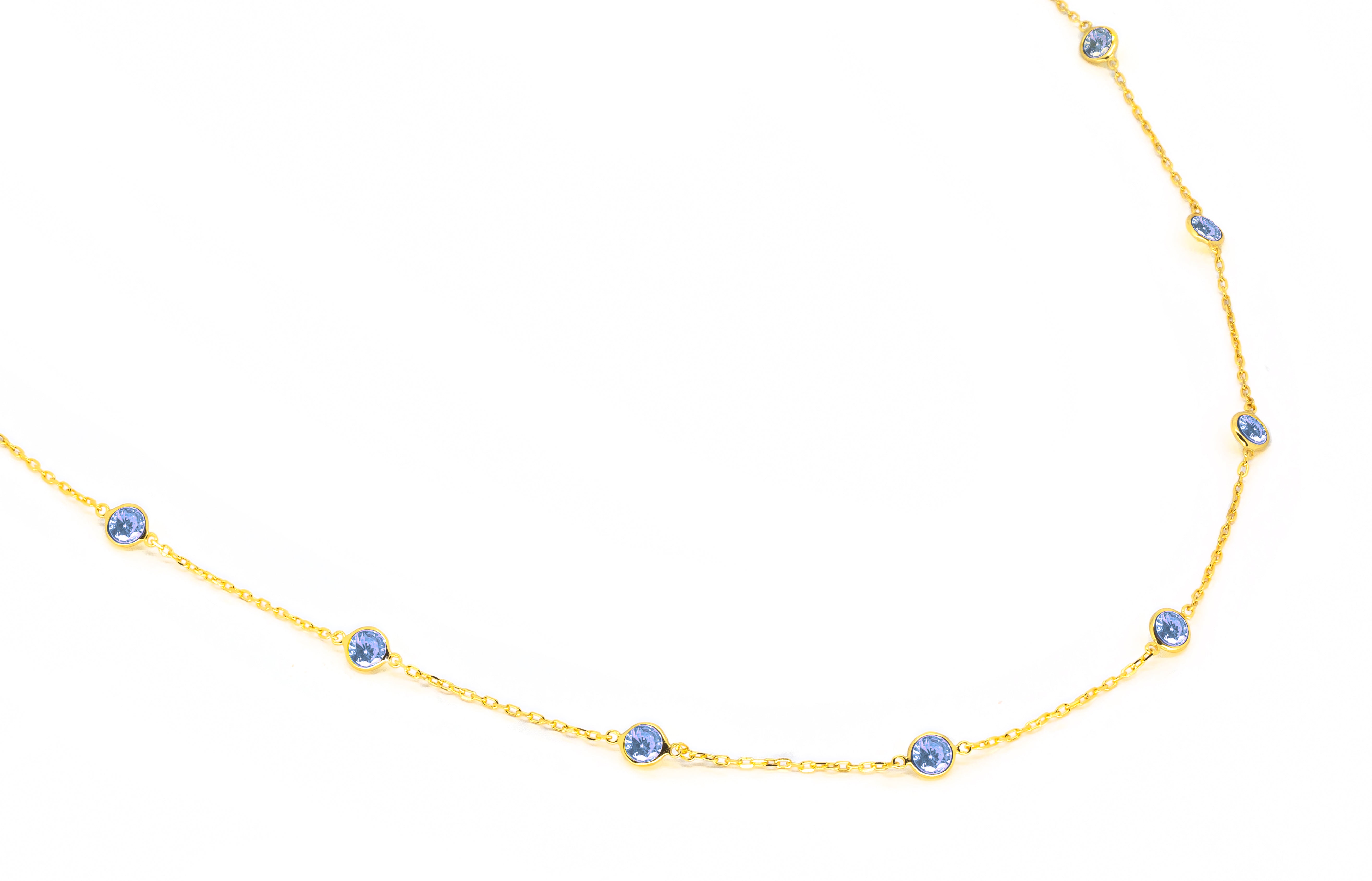 Girocollo con pietre tonde in zirconia cubica aqua blue, realizzata in Argento 925 con galvanica rodio giallo.