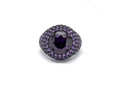 Anello con pietra centrale tonda, realizzato in argento 925 con galvanica rodio nero, pavè in zirconia cubica ametista e cristallo tono su tono.