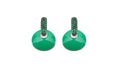 Componenti per orecchini componibili con smaltatura a freddo in verde acqua e galvanica rodio bianco ad alta resistenza.