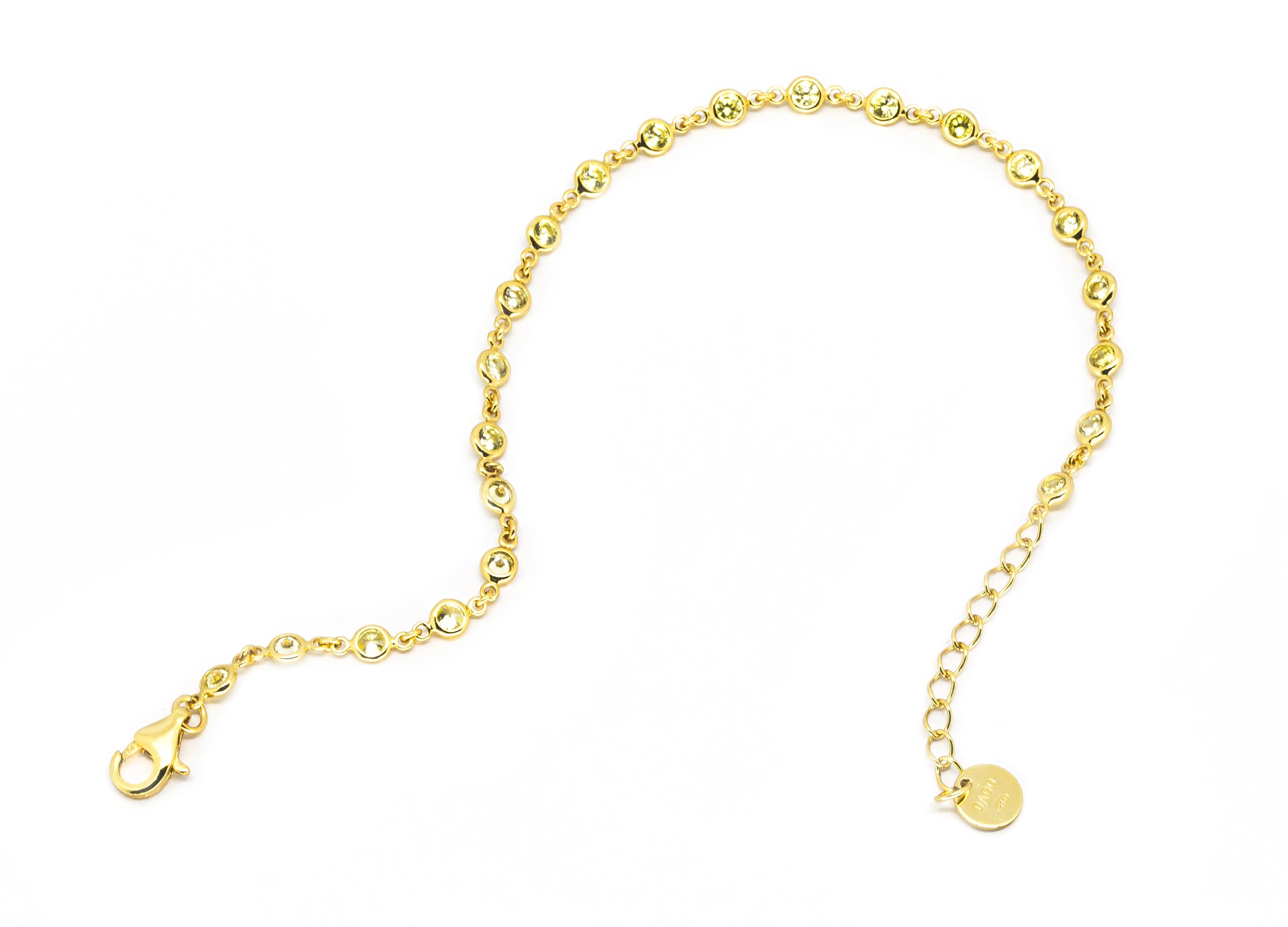 Bracciale a catena sottile con piccole pietre tonde fitte in zirconia cubica gialla, realizzato in argento 925 con galvanica rodio giallo.