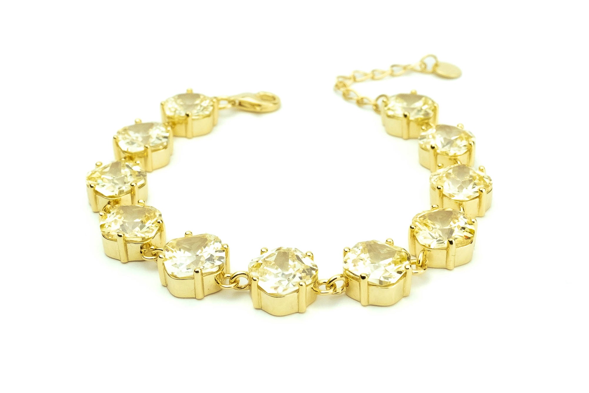 Bracciale con pietre taglio cushion in zirconia cubica giallo lemon, realizzato in argento 925 con galvanica rodio giallo.
