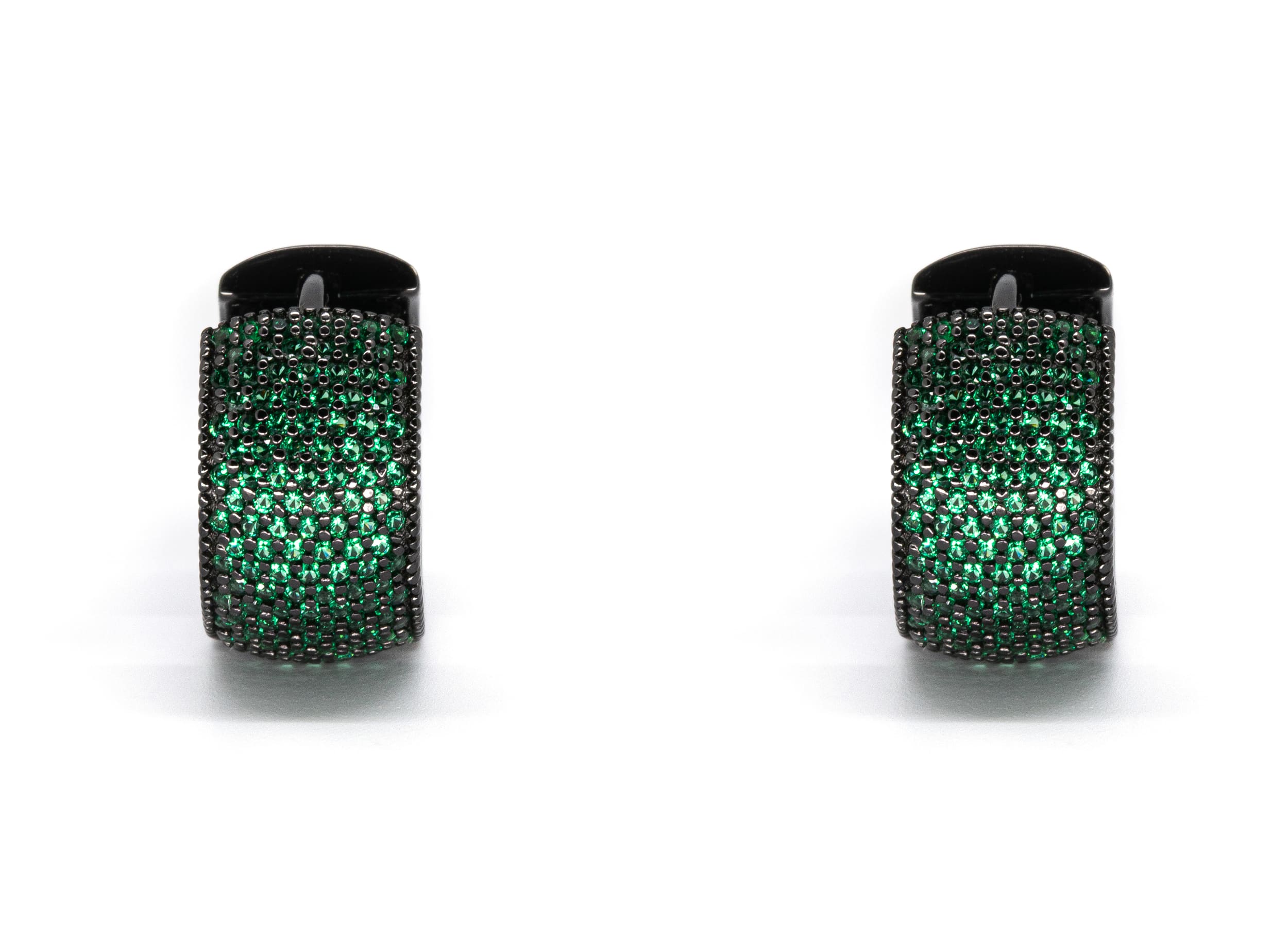 Orecchini a lobo con pavè in nano crystal verde, realizzati in Argento 925 con galvanica rodio nero ad alta resistenza.