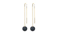 Orecchini a catena sottile con pallina pavè pendente in spinello sintetico aqua blue, realizzati in argento 925 con galvanica rodio giallo e nero.