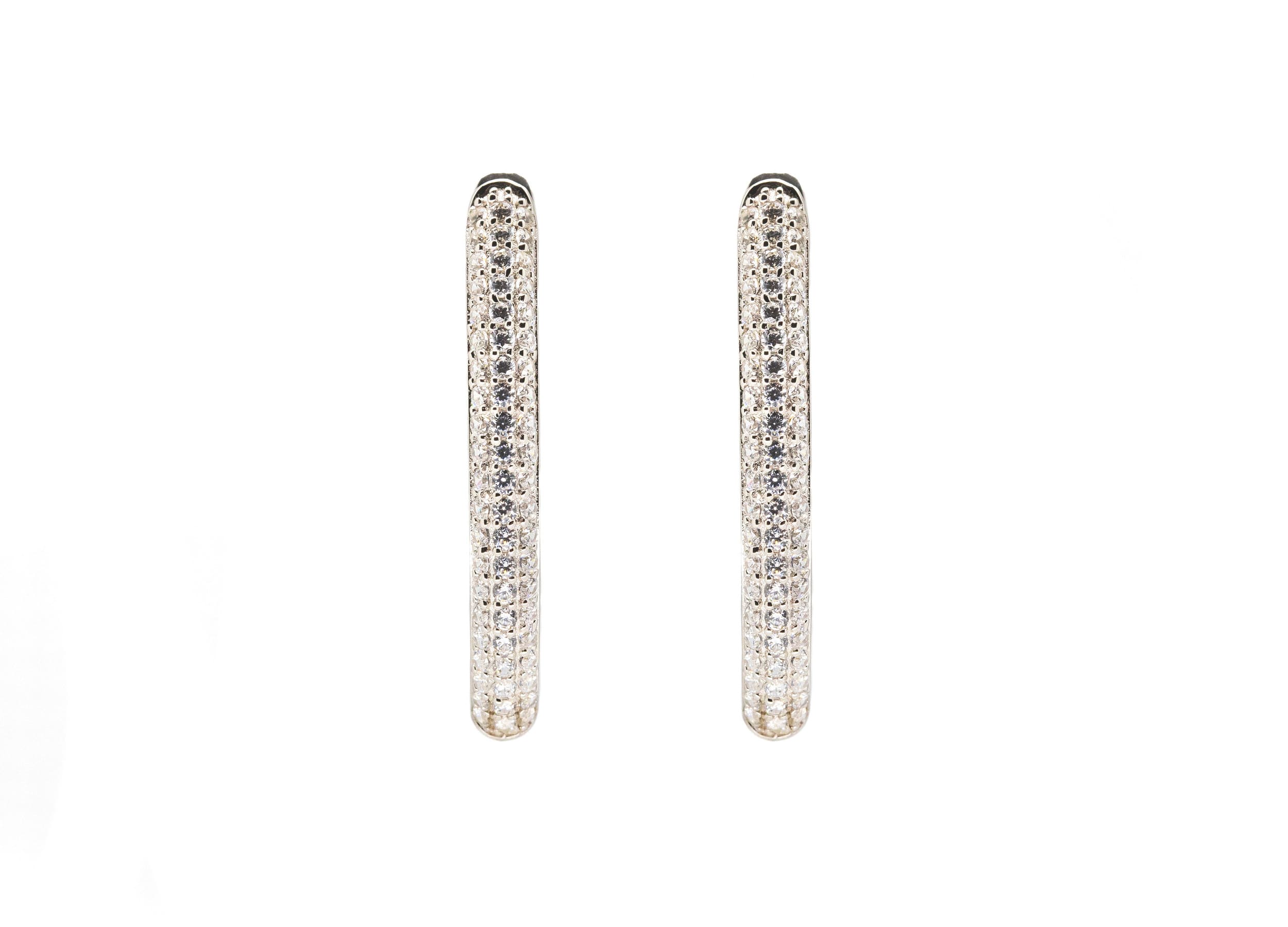 Orecchini componibili con zirconia cubica bianca realizzati in Argento 925 con galvanica rodio bianco ad alta resistenza.