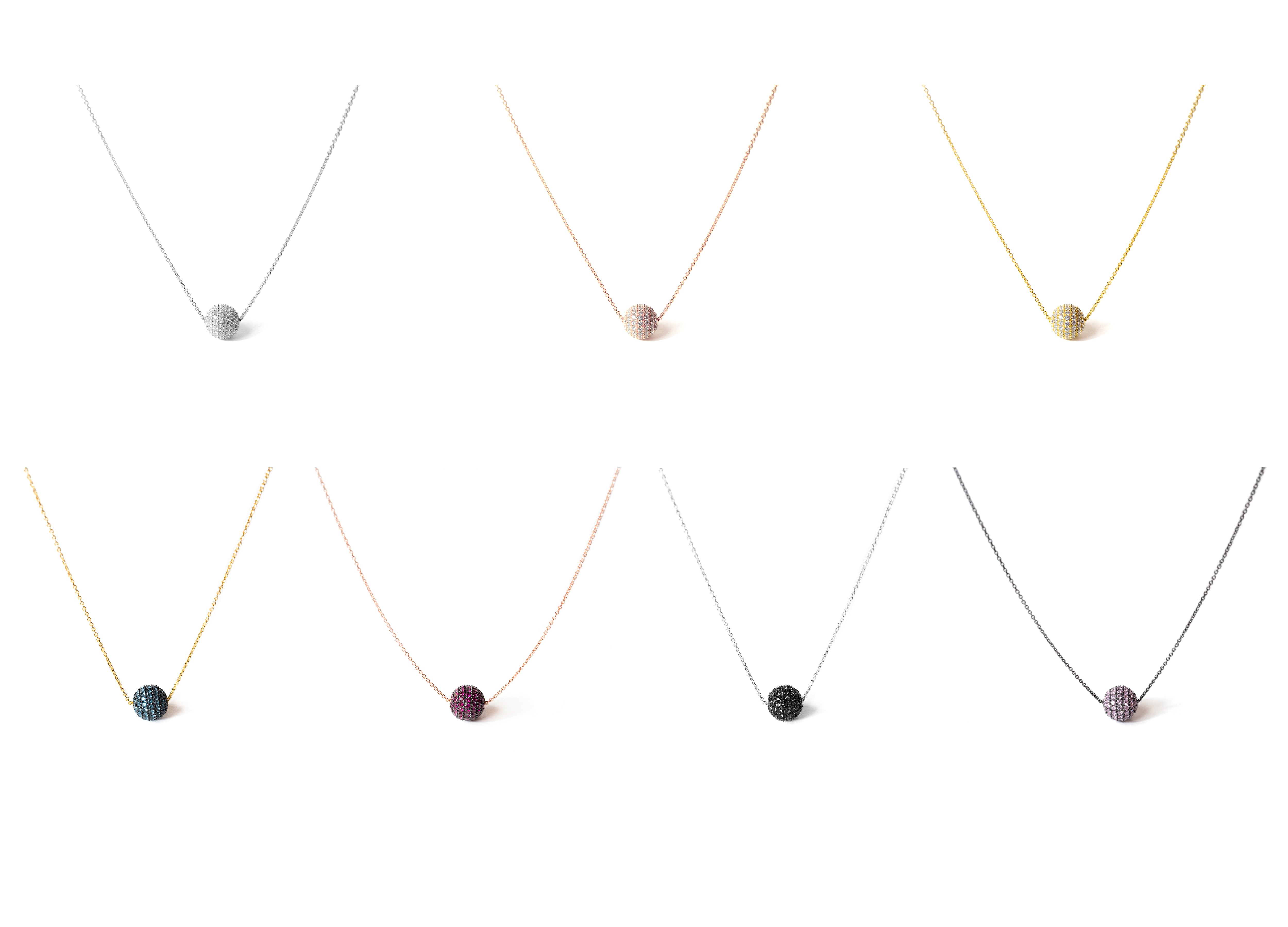 Collana a catena sottile con pallina pavè pendente in spinello sintetico aqua blue, realizzata in argento 925 con galvanica rodio giallo e nero.