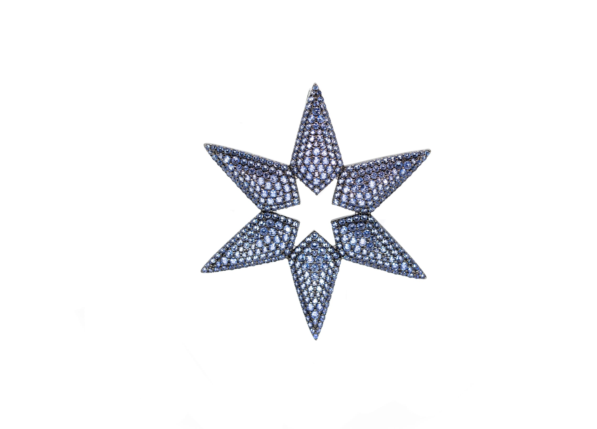 Pendente a stella con pavè in nano crystal blu zaffiro, realizzato in Argento 925 con galvanica rodio nero ad alta resistenza.