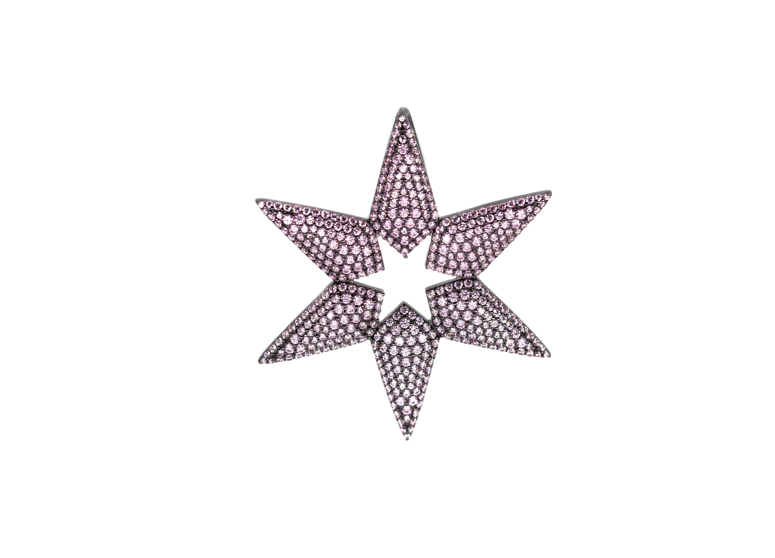 Pendente a stella con pavè in zirconia cubica rosa, realizzato in Argento 925 con galvanica rodio nero ad alta resistenza.