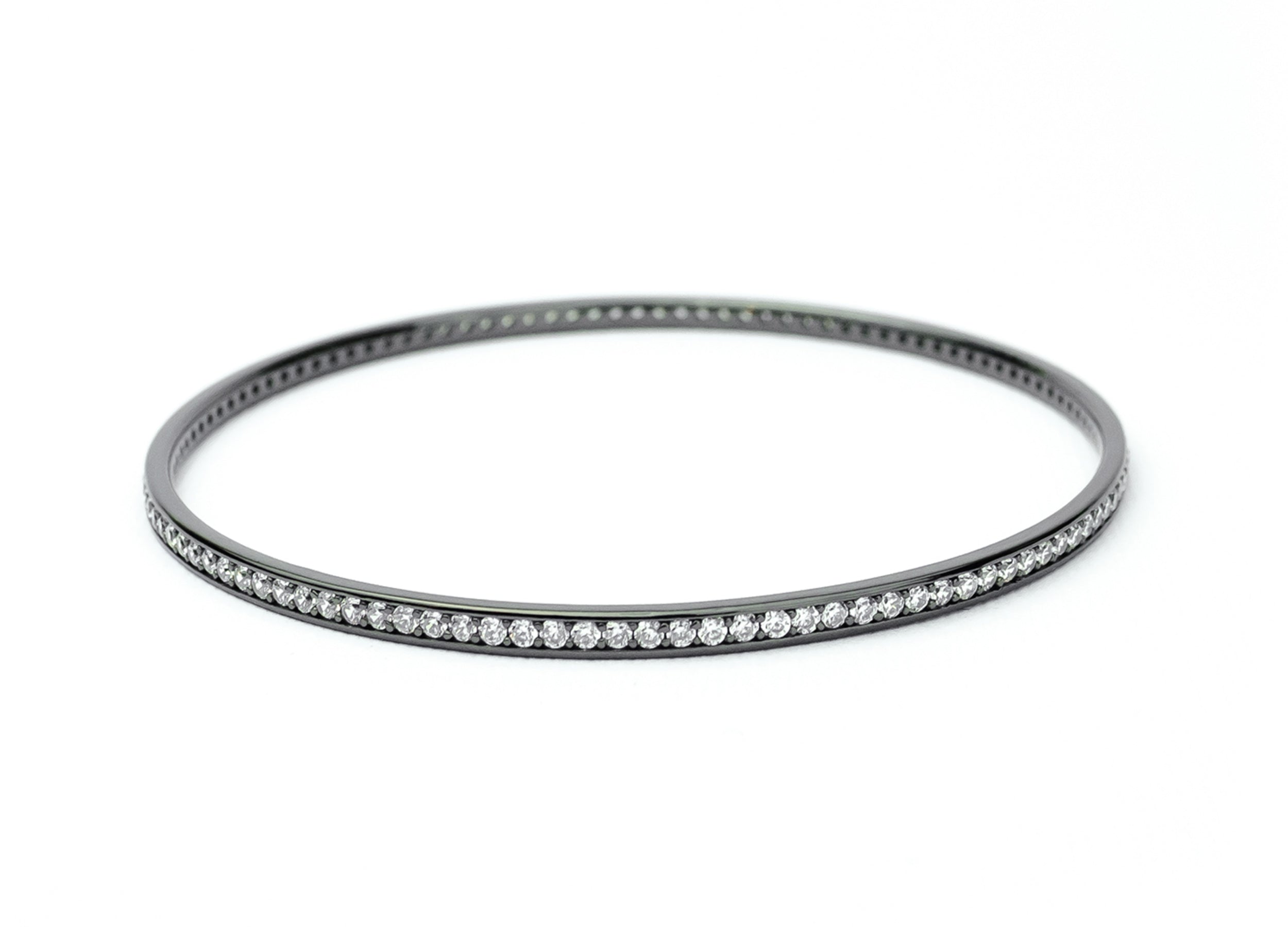 Bracciale modello bangle con pietre tonde in zirconia cubica bianca, realizzato in Argento 925 con galvanica rodio nero.