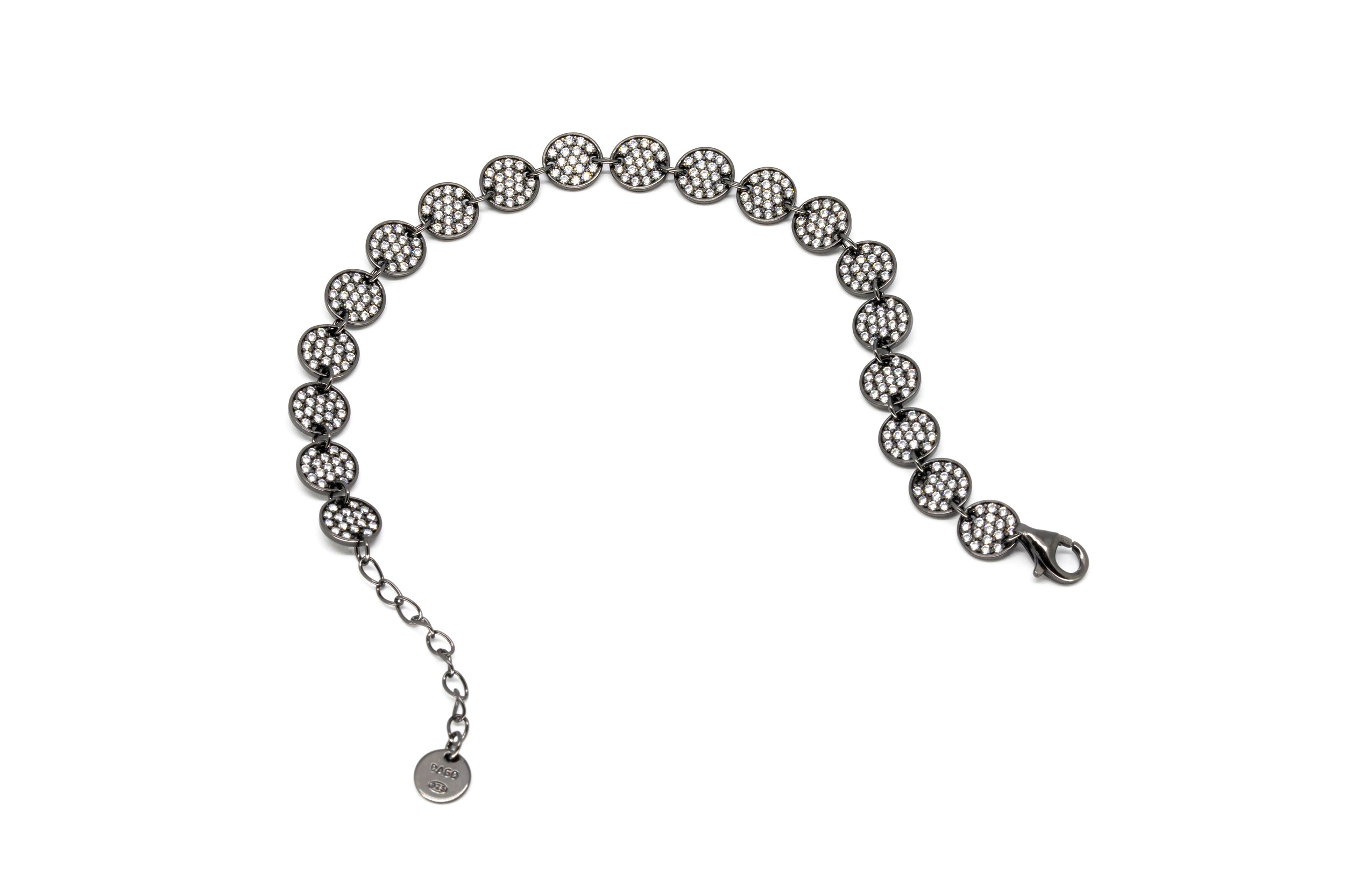 Bracciale con dischetti a pavè in zirconia cubica bianca, realizzato in argento 925 con galvanica rodio nero.