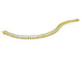 Bracciale tennis realizzato in Argento 925 con galvanica rodio giallo impreziosita da coloratissime pietre a taglio baguette con scalatura di colore giallo e bianco.