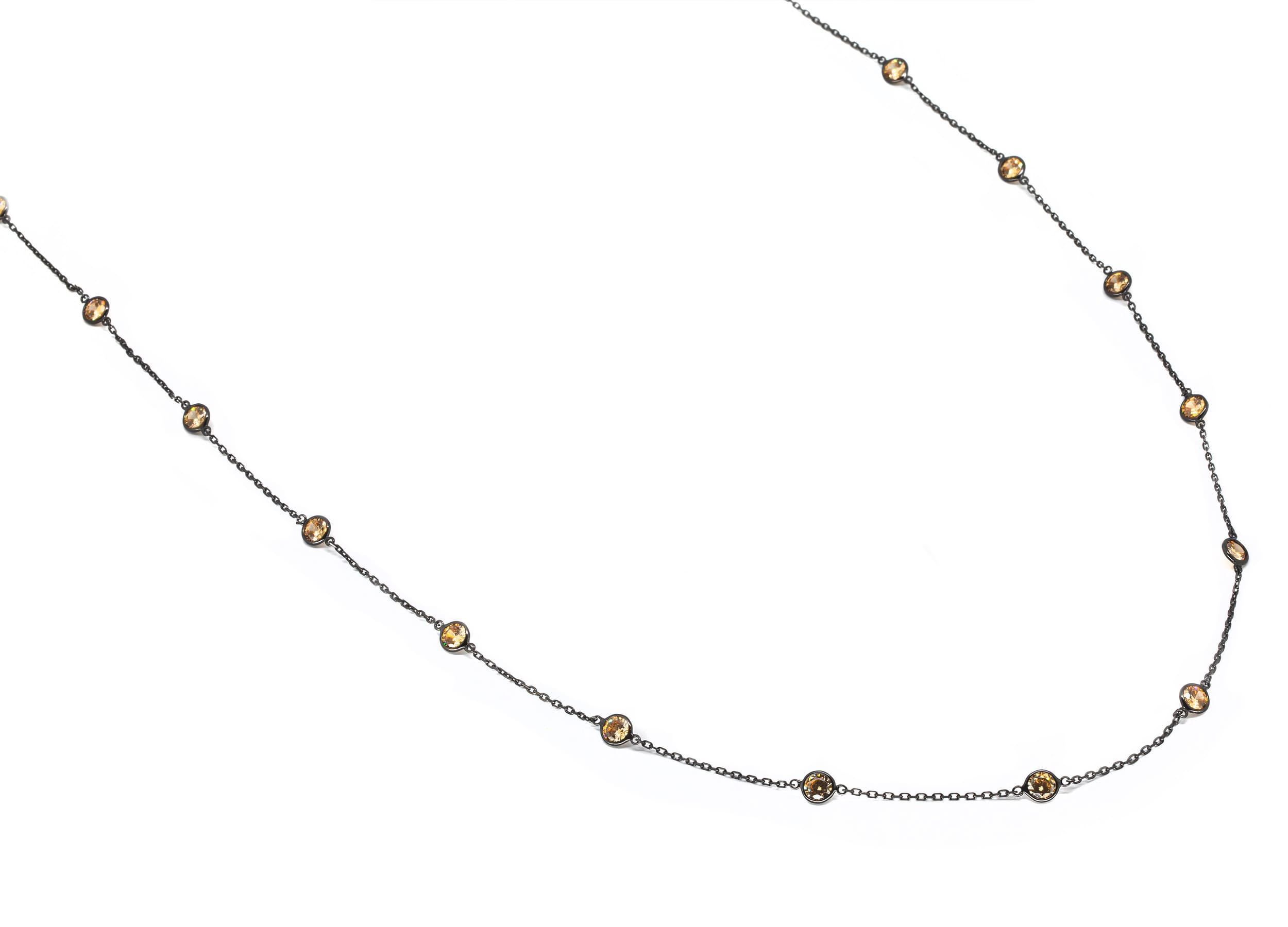 Collana lunga con pietre tonde in zirconia cubica champagne, realizzata in Argento 925 con galvanica rodio nero.
