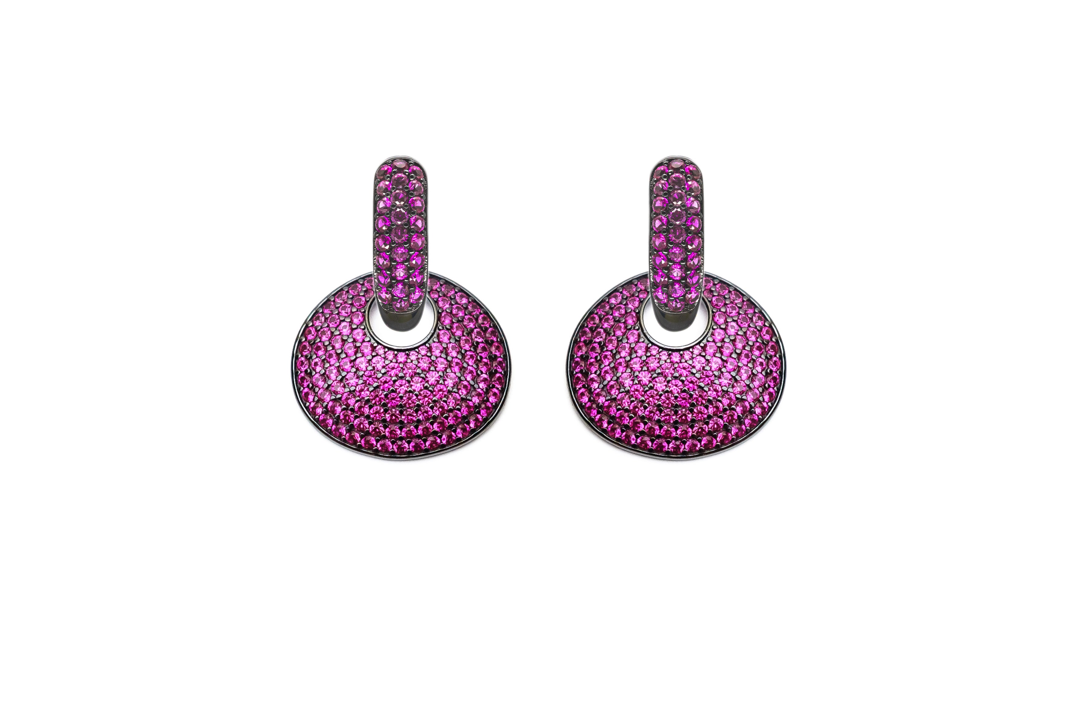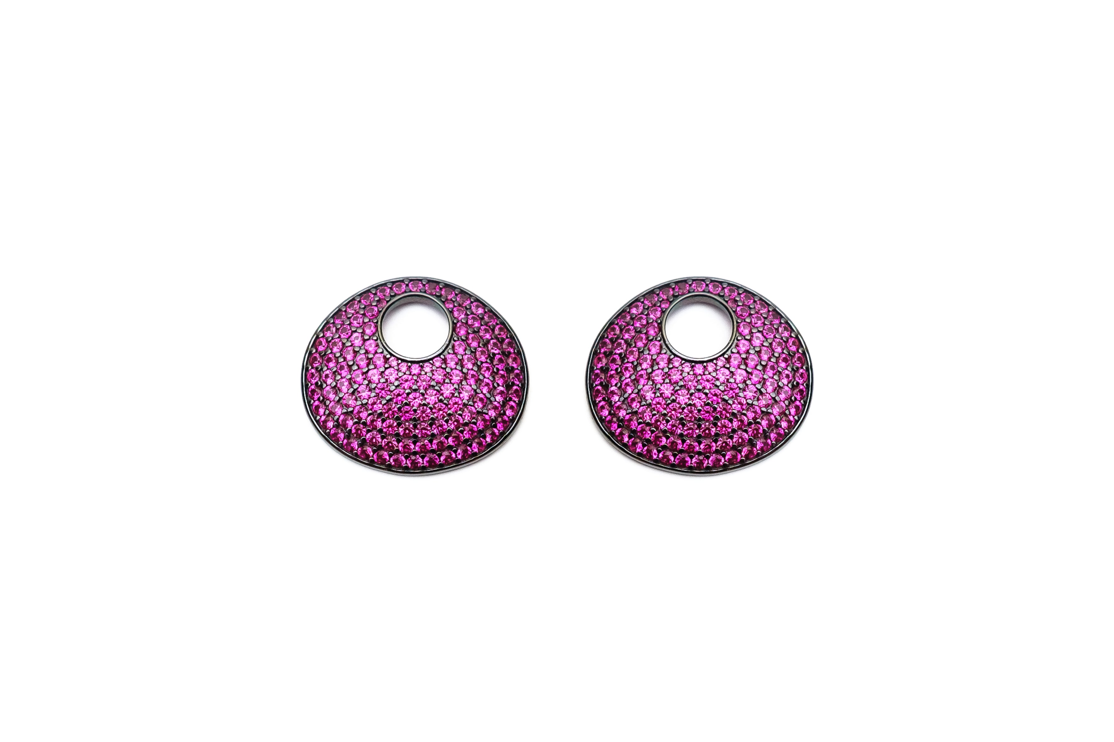 Componenti per orecchini componibili con pavè in rubino sintetico, realizzati in Argento 925 con galvanica rodio nero ad alta resistenza.