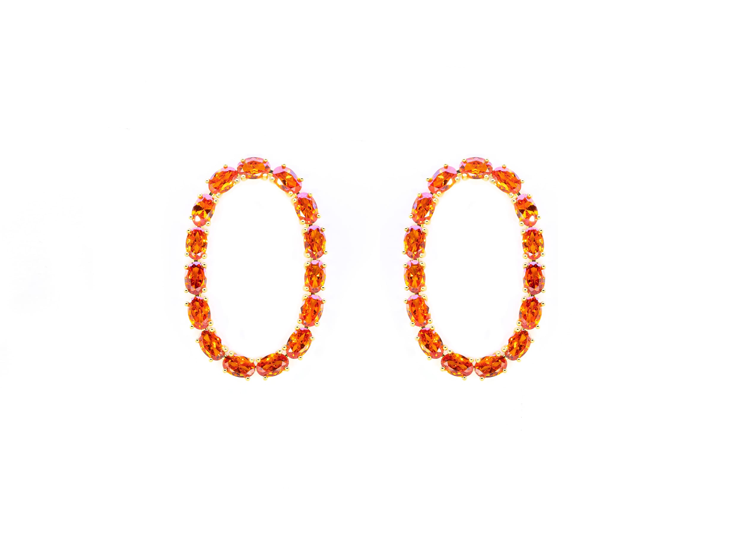Componenti per orecchini componibili con pietre dal taglio ovale in zirconia cubica arancio, realizzati in Argento 925 con galvanica rodio giallo.