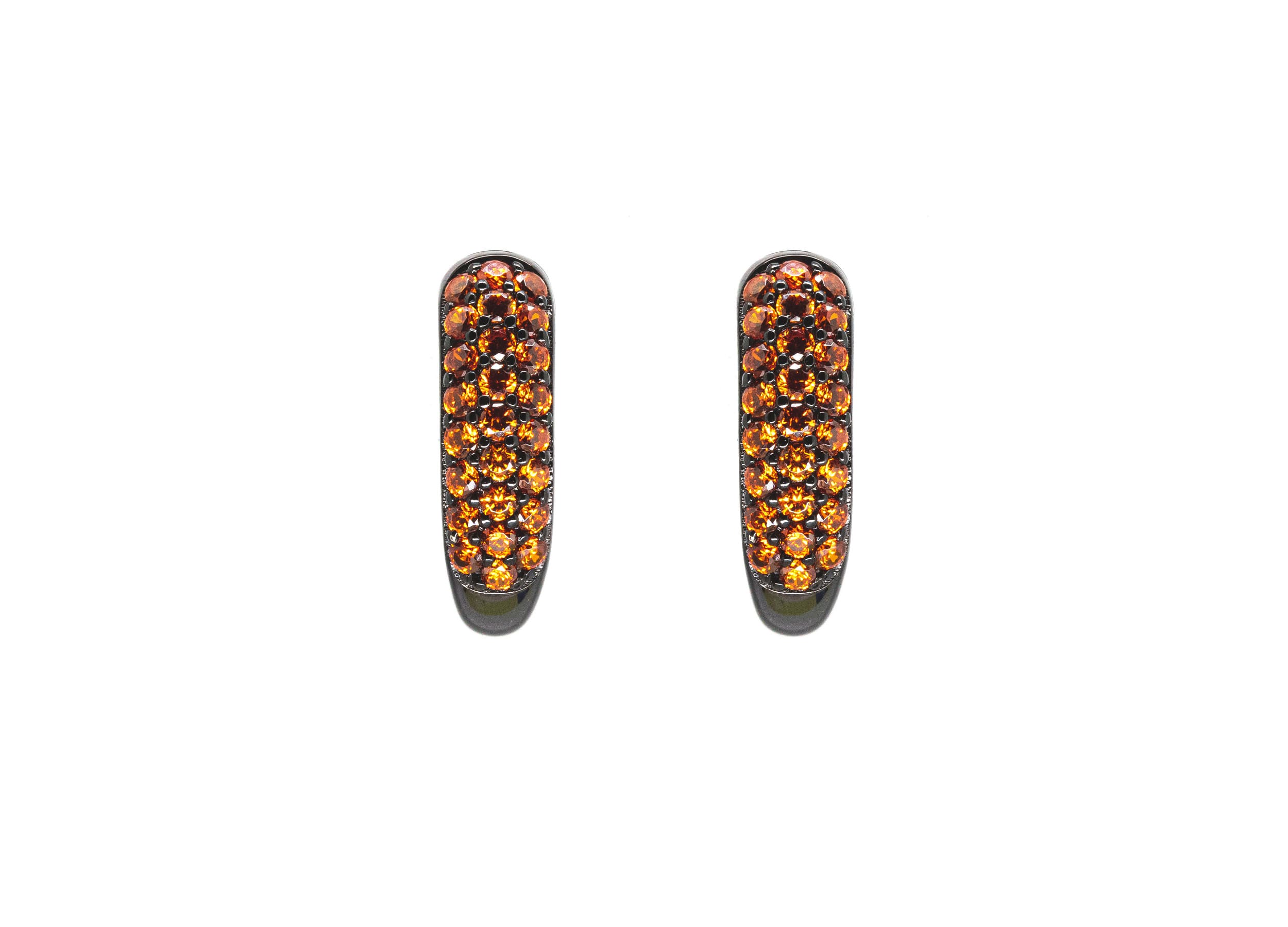 Orecchini componibili realizzati in Argento 925 con galvanica rodio nero ad alta resistenza e zirconia cubica arancio.