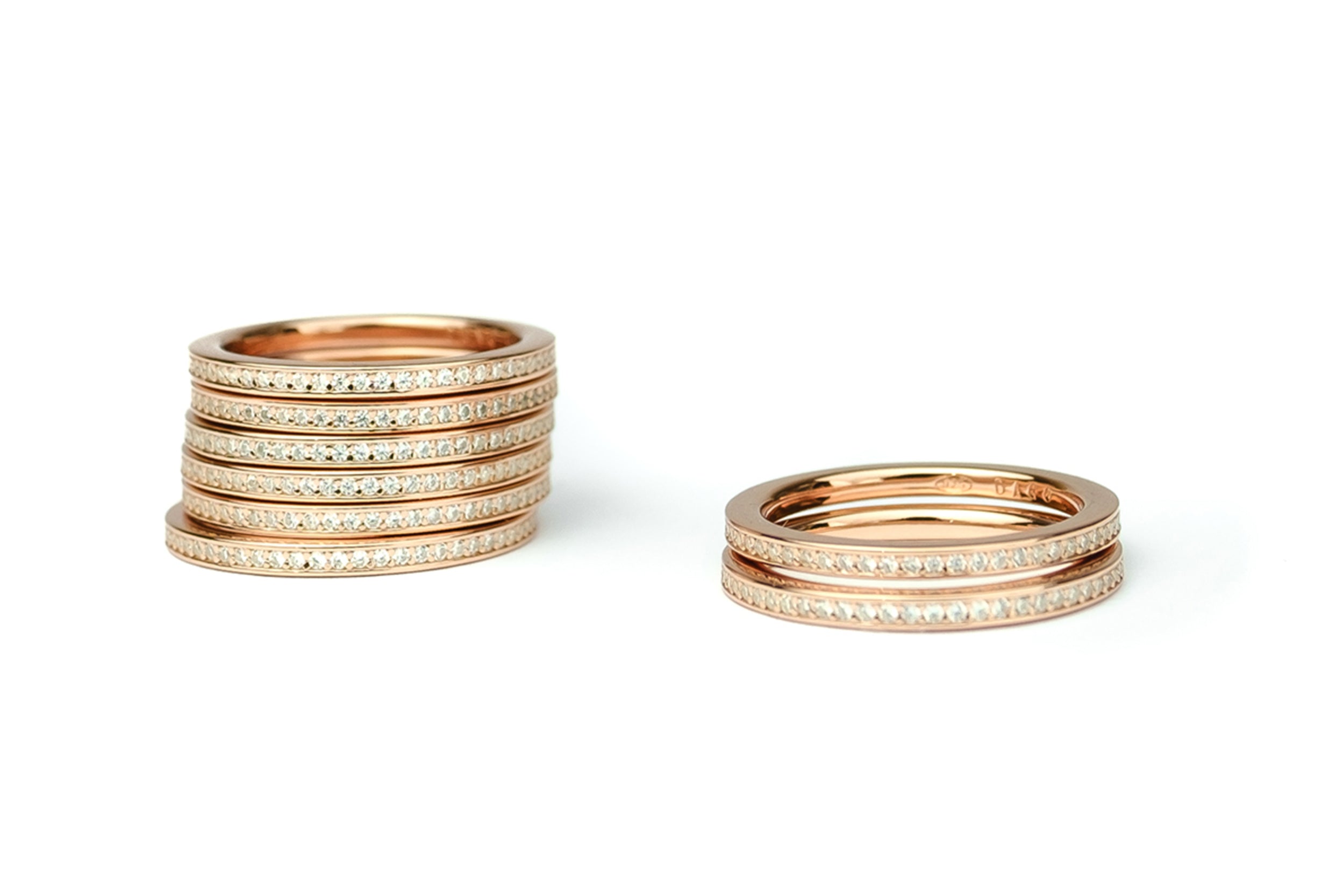 Fedina componibile realizzata in argento 925 impreziosita da piccoli tondi in zirconia cubica bianca e galvanica rodio rosa.