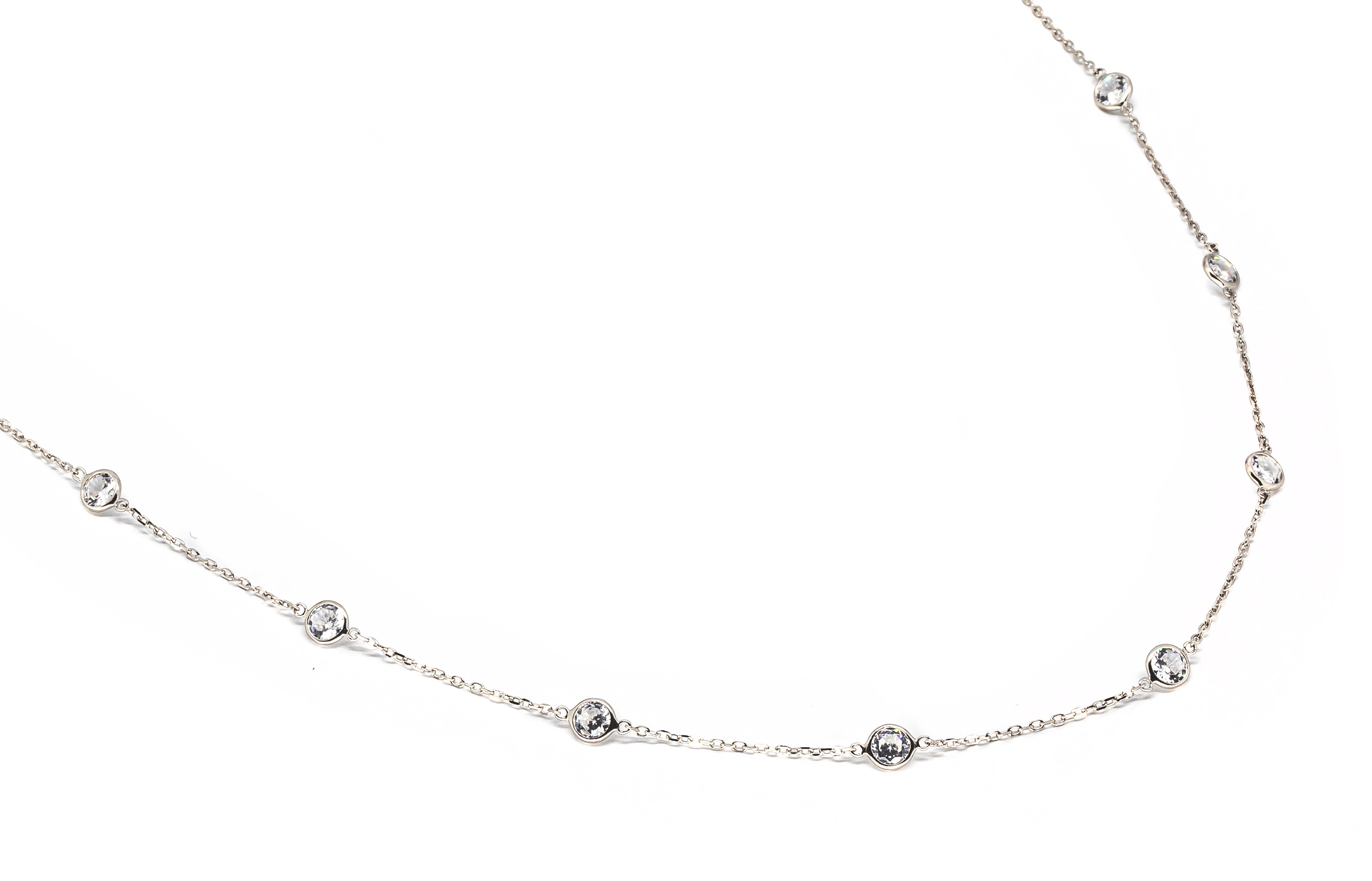 Girocollo con pietre tonde in zirconia cubica bianca, realizzata in Argento 925 con galvanica rodio bianco.
