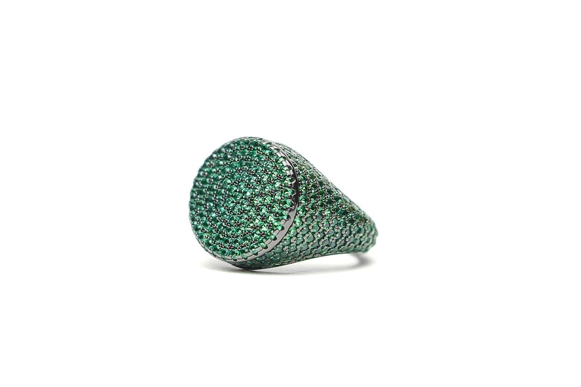 Anello da mignolo realizzato in argento 925 con full pavè in nano crystal verde, galvanica rodio nero.
